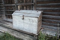 Из автобиографии: Хозяин сделал меня из ящика- упаковки для сенокосилки ( Это было время столыпинской аграрной реформы начала 20 в.) после переезда в Сибирь. И сейчас на моей доске сохранилась надпись по- английски: поставщик фирма «Маккормик и К», г. Чикаго (США), место поставки г. Новониколаевск (с 1926года- г. Новосибирск), размеры груза. И по русски: «Откройте съ этого боку».Вот и служу хранилищем для зерна и муки более 100 лет. Грызут меня мыши, точит шашель.