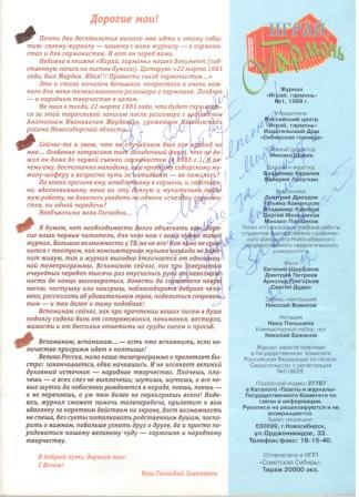 Ещё Александр поделился радостью: начали выпускать журнал, который тоже называется «Играй, гармонь». Вышел первый номер. Он показал его мне, потом достал из пиджака ручку и размашистым почерком написал: «Дорогому семейству Лысенко! Любви! Мира! Спасибо за память, всё доброе в прошлом!» - и подарил мне.