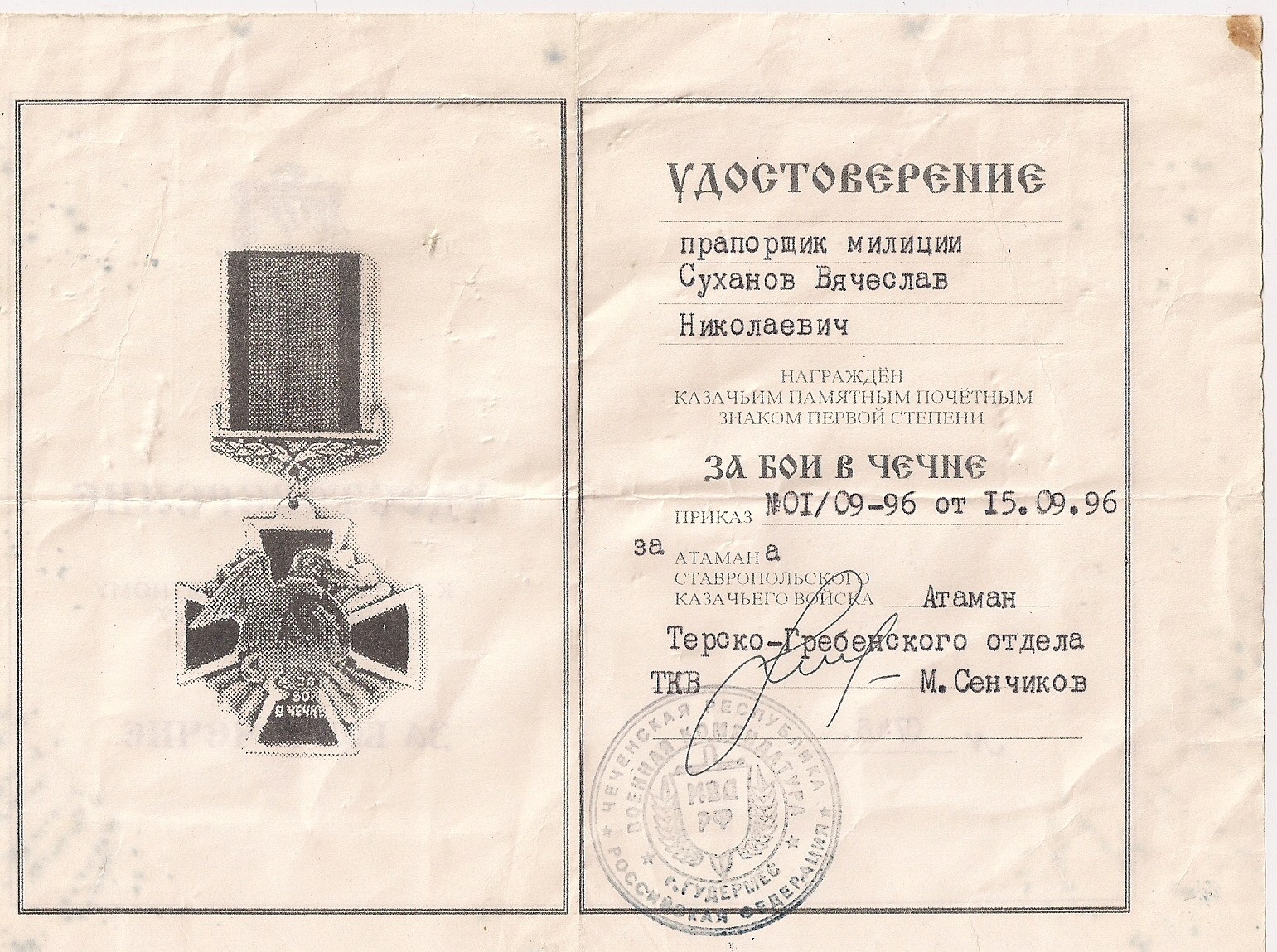 Чечня навсегда отняла у нас моего дядю, Суханова Вячеслава Николаевича.13 марта 2000 года погиб в сражении с боевиками бандформирования (под командованием Р. Гелаева) в селе Комсомольское.