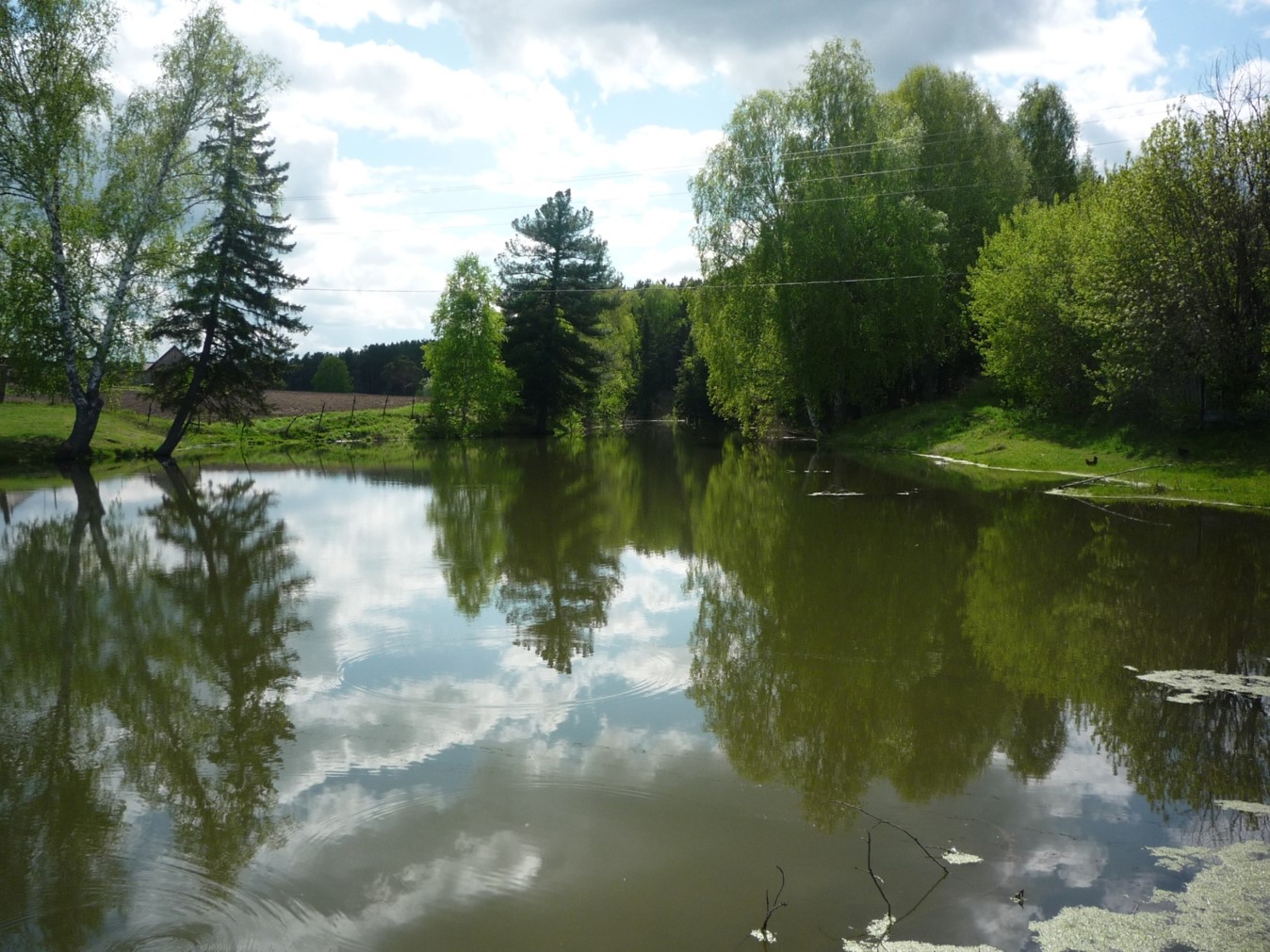 Жители ближайших домов разводят водоплавающих птиц: гусей и уток. Весной на пруд прилетают и селятся дикие утки. Каждый день ранним утром и поздним вечером слышно кря-кря-кря... Интересно наблюдать за тем, как любопытные маленькие дикие утята подплывают к домашним уткам и гусям. При этом они стараются держаться на расстоянии. Почувствовав опасность, молниеносно прибиваются к берегу. Для домашних - воля вольная: они ныряют, отвоевывают территорию у соседских уток или гусей. Все держатся своими группами. А когда повзрослеют, (примерно, середина августа, сентябрь), устраивают крылатые гонки по пруду: разгоняются, взлетают, широко расправив крылья, приземляются и гогочут…