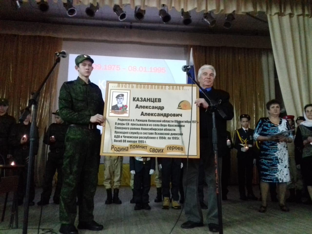 «Земля за веком век будет нести нас вокруг Солнца, даря поколениям страстное и животворное тепло огня. А я в десятый, в сотый и в тысячный раз возвращусь к его судьбе, к его письмам, (Читается письмо Саши родителям от 06.12.1994 года) к воспоминаниям земляков – там будет всё то, что человек должен взять с собой в жизнь, чтобы стать Человеком!