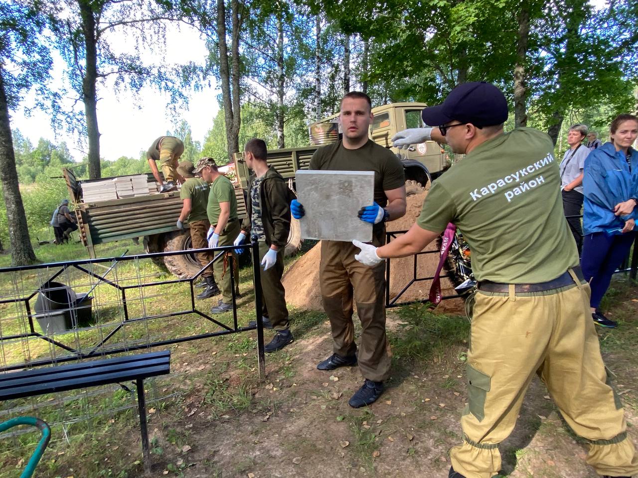 Командой карасукского десанта была проведена уборка братского захоронения: это выкос травы и борщевика, уборка территории, поиск фамилий земляков. Проведен митинг с возложением венка. Заместителями глав Карасукского района Шитвиным С. Н. и Нелидовского городского округа Грачевой Н. Г. осмотрено внешнее состояние захоронения, намечен план ремонтных работ на следующий год.