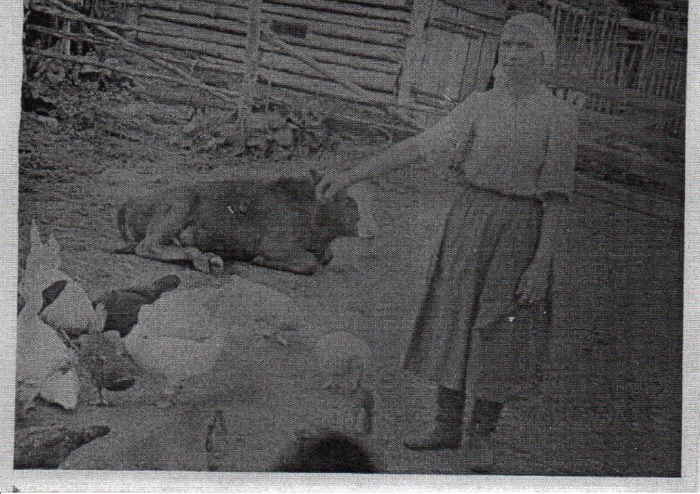 А я до войны пасла телят, а во время войны председатель сельсовета назначил меня возить почту, но если было надо, я вместе со всеми ловила на полях саранчу, собирала колоски. Умели люди в то время трудиться. Тракторов не хватало- пахали на быках, на коровах подвозили семена. Пахали ночью так: впереди идёт человек с фонарём, а сзади пахарь едет. Работали много, не глядели, что голодные. Колоски наберём, зерно через рушалку пропустим, с лебедой смешаем , кашу наварим и едим.