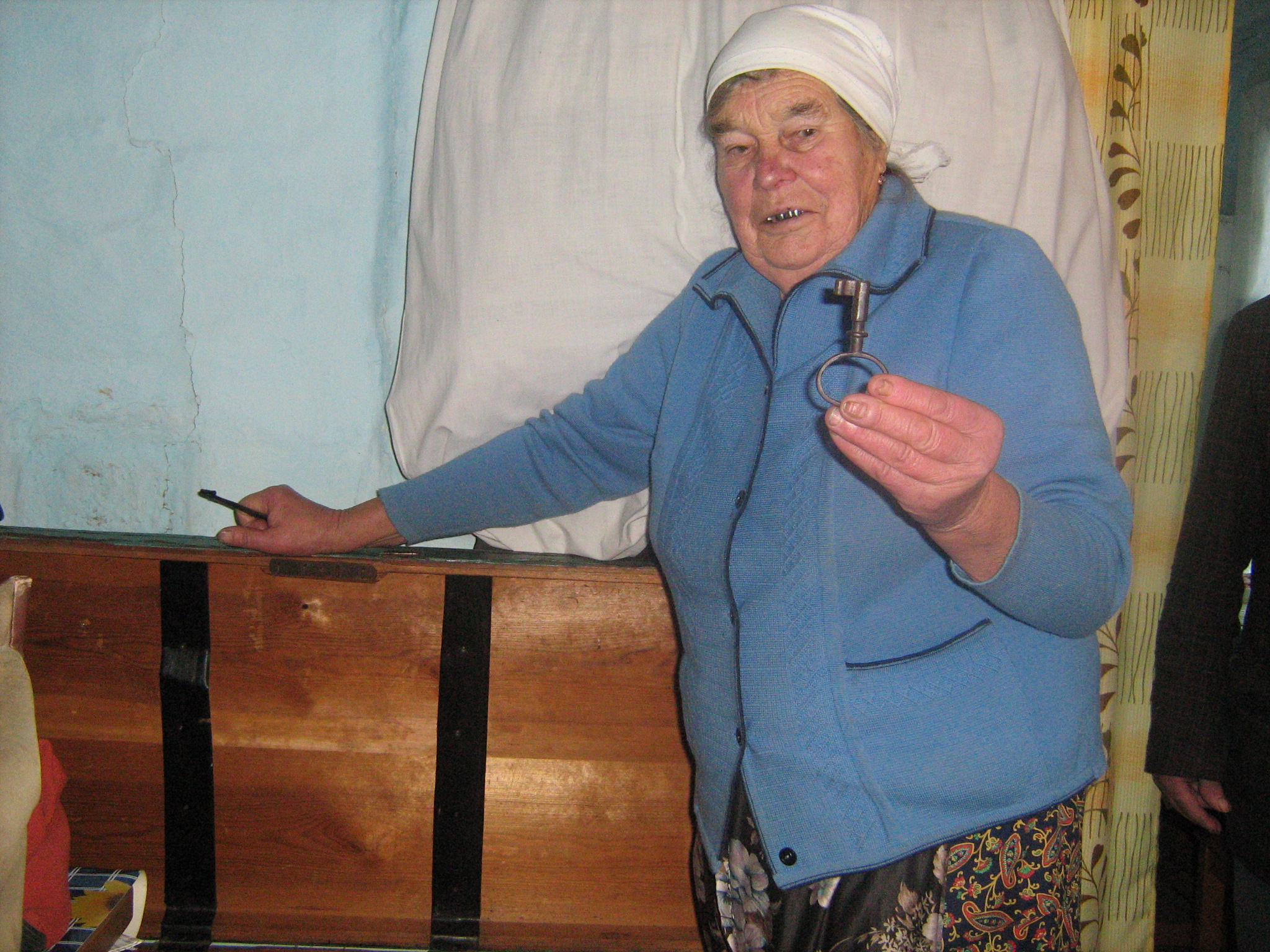 Нам, молодым, хотелось заменить сундук новой, современной, более удобной мебелью, но как только мы заводили разговор, она садилась на сундук и приговаривала: «Уберёте сундук, я в милицию пойду!» А когда ей предложили переехать, то опять-таки она дала своё согласие на переезд только с сундуком. Детям, конечно, нравилось, когда бабушка, словно волшебница, открывала сундук. Для них он был источником сказок, подарочков, сладостей».