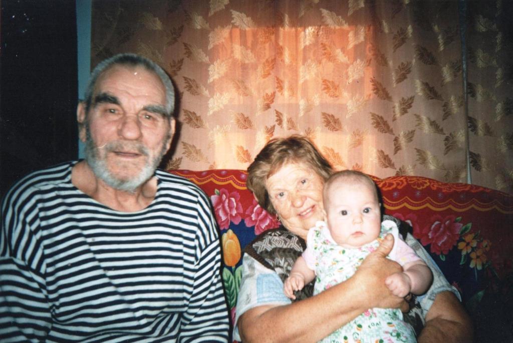 - Войну пережили: голод, холод, нищету. Война воспитала нас такими. Мы быстро повзрослели и привыкли ценить жизнь. Детей сохранила, семью сохранила – не ушла в трудное время от их отца. Да кому нужны чужие дети, только родной отец, какой бы он ни был, по - настоящему радуется своим детям. Вот теперь дети нам помогают. Дочка Надя всю жизнь проработала заведующей сельской библиотекой, каждый день приходит по несколько раз, следит за нами. Внук Владимир много лет проработал в «МУПе», люди о нём с благодарностью говорят, в любое время придёт, кран починит, с семьёй забегает, не забывают нас. Сын Саша много лет проработал в Кандауровском совхозе, тоже приезжает, его дети. Социальный работник Попова Надя – умница, порядок наводит – вот и ответ, как мне всё удаётся. Жизнь проходит: день, другой, месяц, года. Смолоду всё время в работе, не замечаешь, как быстро время летит. А дед, дед родился в рубашке, теперь тихо и спокойно лежит на мягком диване и доживает свою жизнь. Правнука у Вовы назвали в честь деда Коли. А он лежит, да радуется.