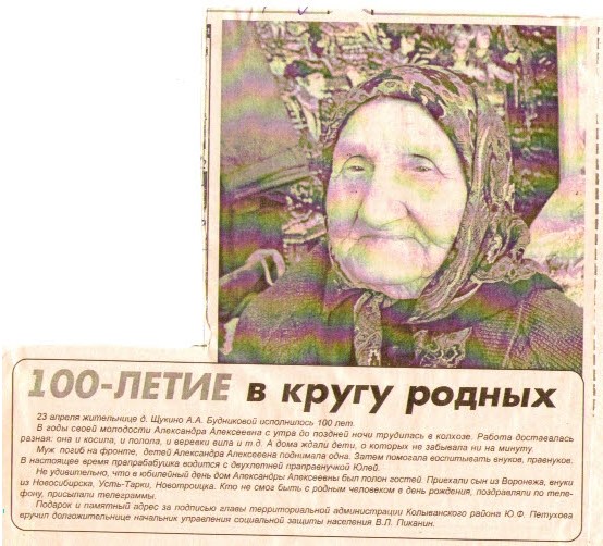 Есть ещё огонёк тех, кто когда-то основал её. Ведь в этой деревни прожила 102 года долгожительница Будникова Александра Алексеевна, которая пережила революцию, Великую Отечественную войну, Довыденко Просковья Никифоровна, которая переселилась из Россеи и видела Ленина, часто рассказывая в сельском клубе перед жителями об этой встречи. И много, много замечательных людей прожили в деревни Щукино. Спасибо деревня, за то, что ты живёшь.