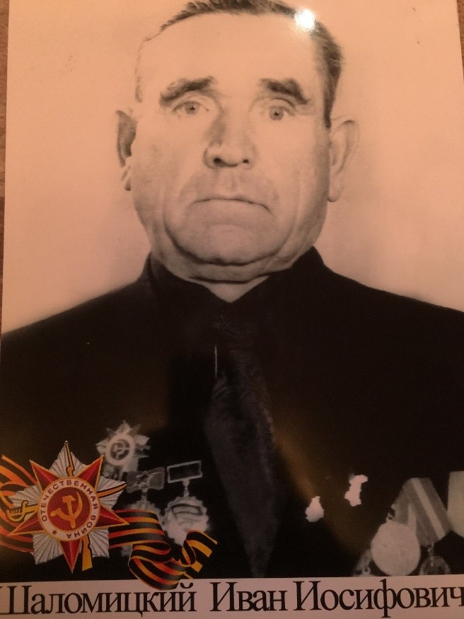 Мой прадед - Иван Иосифович Шаломицкий, с самого начала войны ушёл на фронт. Был десантником-стрелком. Защищал Москву и Сталинград.