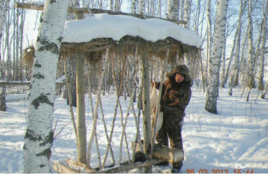 Животным в это время бывает очень трудно. Отец каждый день ездит к кормушкам, которые он устраивал со своими друзьями, подсыпает в них корм для животных, чтобы им было легче перезимовать.
