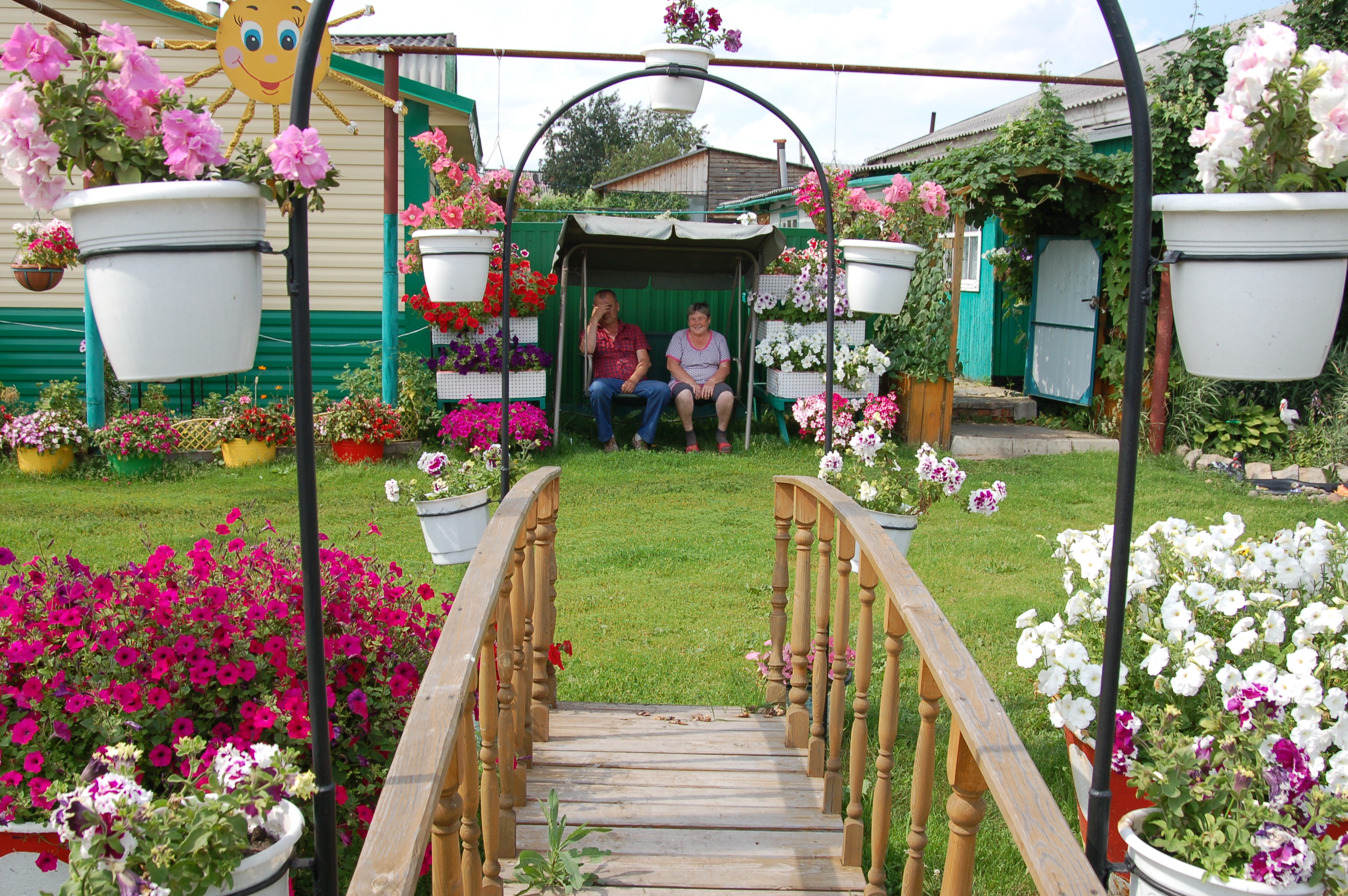Дом Марии Фёдоровны Михайловой находится на окраине села. Двор, балкон и приусадебный участок оформлены с любовью и фантазией. Великолепный набор прекрасных соцветий придаёт неповторимый вид усадьбе, открытой для гостей.